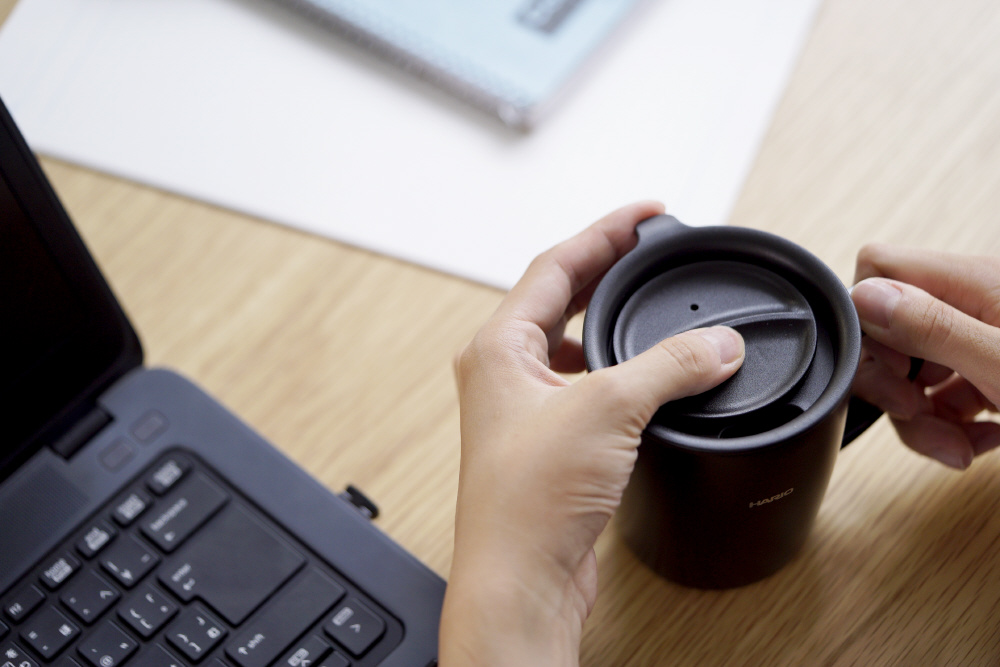 冷めにくいスライド式のフタ付きなので、オフィスや自宅でもこぼしにくくスムーズな移動ができます。
