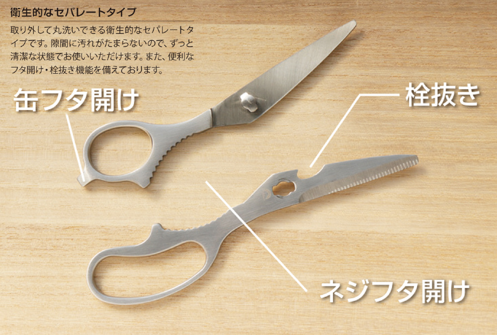 分解して洗える清潔なオールステンレスキッチンバサミ。