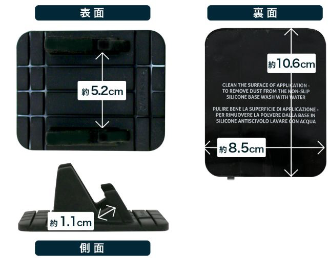 フレキシブルな独自開発のスリット入りシリコンを採用。接着剤も吸盤も磁石も使わず「ただ置くだけ」でしっかりグリップする抜群の安定感。汚れたり接着が弱まったら、温水で洗い流せばOK。