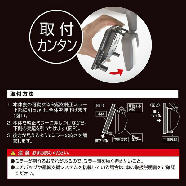 ・純正ミラーより大きなサイズのミラーで、後方の視界を広げることができるセーフティーグッズです。