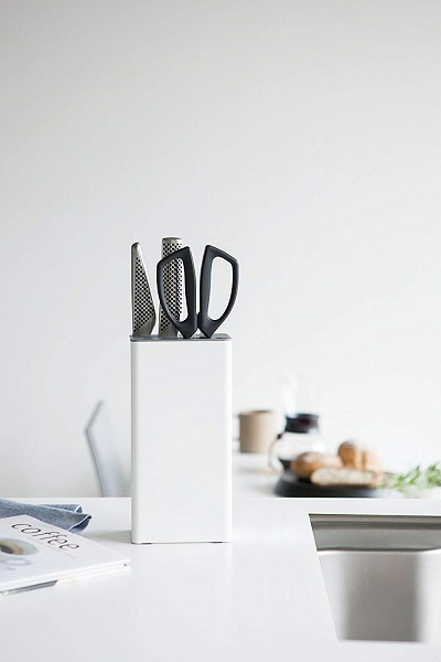 包丁とキッチンバサミを一括収納。本体に重量があるので倒れにくい設計。シンプルでスタイリッシュなデザインです