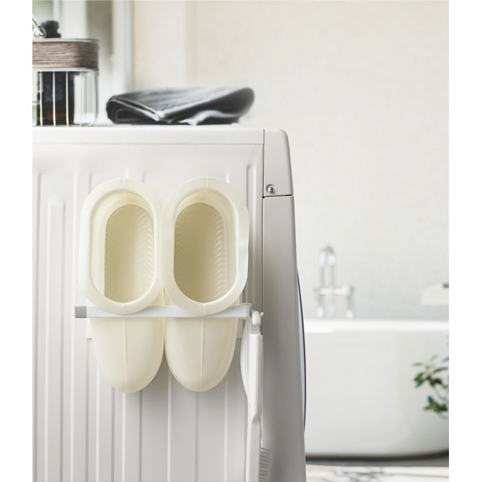 磁石で洗濯機横に簡単取付。かさばる洗濯ハンガーをスリムに一括収納。洗濯物をその場でハンガーに掛けられるから動作がスムーズ。取り出しやすく、使った後はスリムに収納。洗濯バサミも収納可能。横向き使用時にブラシなどを掛けられるフック3個付き。ピンチハンガー・お掃除ツールバスブーツの収納にも使えます。付属の木ネジで簡単取り付け。洗濯ハンガーを洗濯機横のすきまにスッキリ収納。