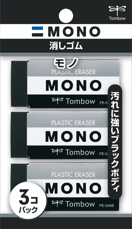 消しゴム パック3個入り 幅23×全長55mm MONO(モノ) ブラック JCC-311