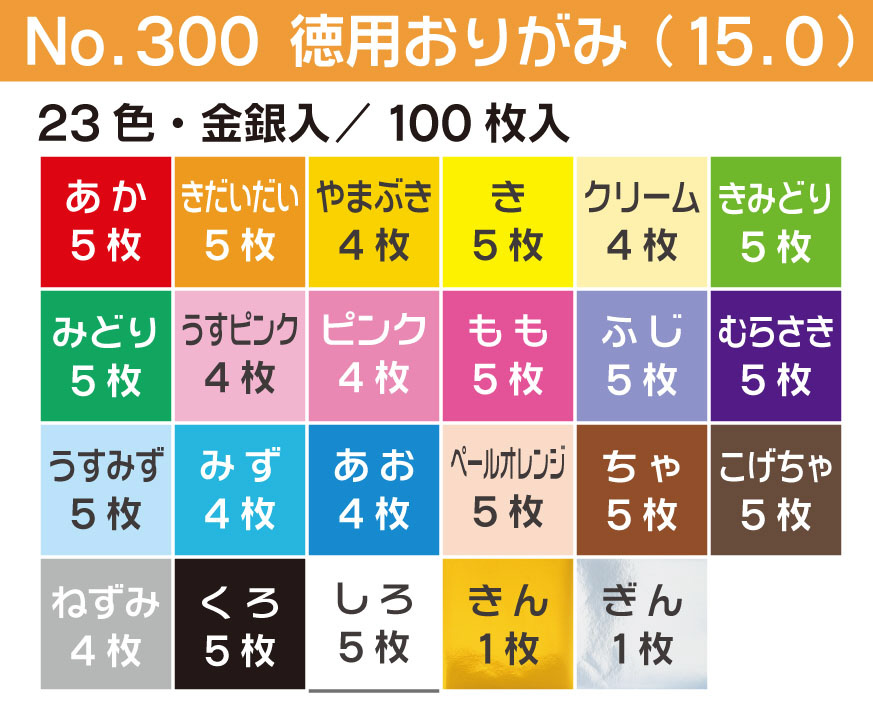 15cmおりがみ 100枚(23色) 徳用おりがみ 90202