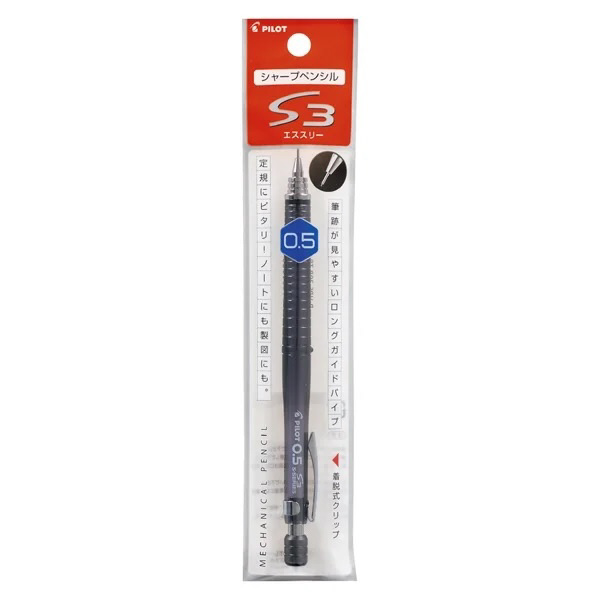 S3 エススリーシャープペン 0.5mm パック入り 透明ブラック軸 P-HPS-30R-TB