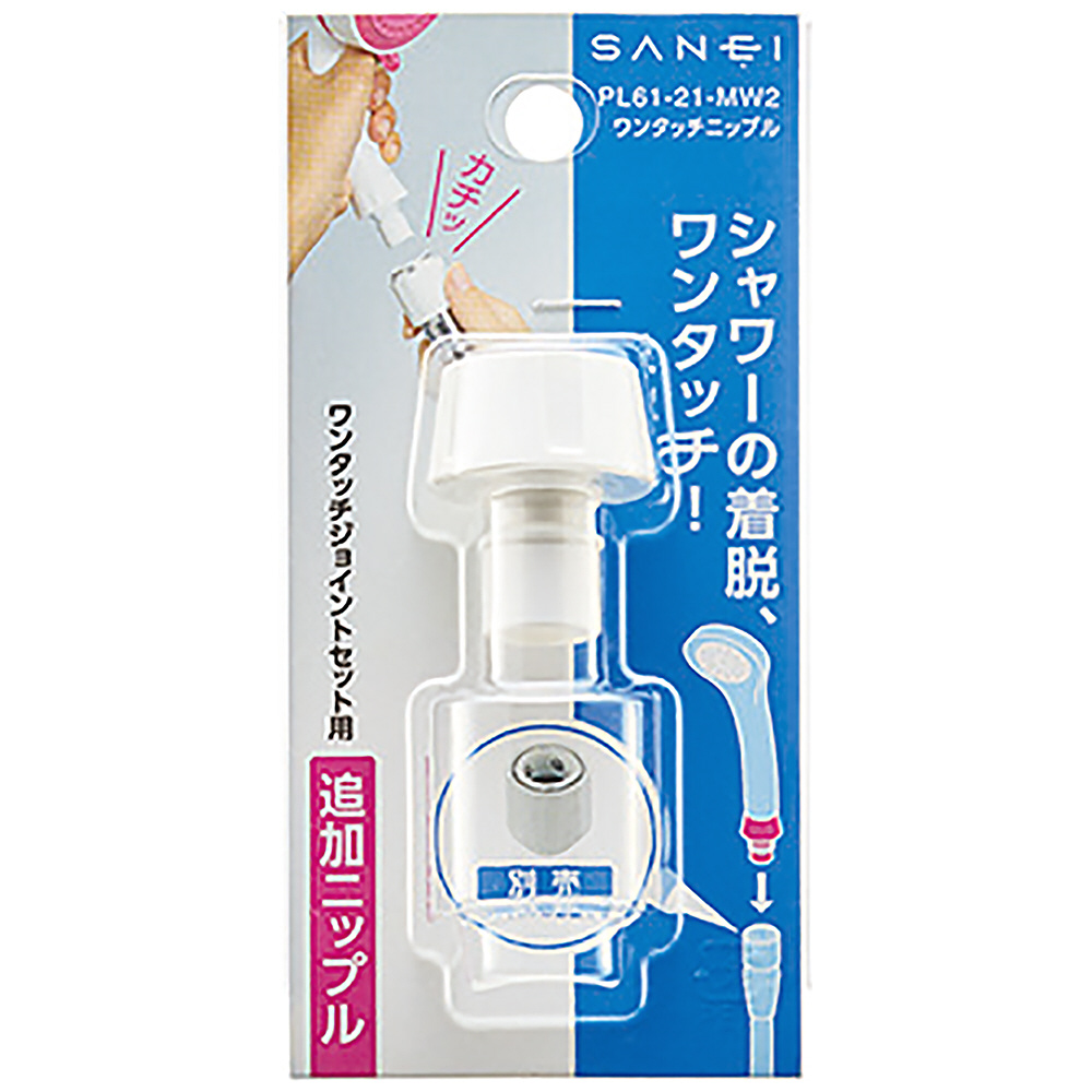SANEIのワンタッチジョイントセット用の追加ニップルです。シャワーヘッドの着脱をワンタッチで行います。複数のシャワーヘッドを使い分けるのに便利です。