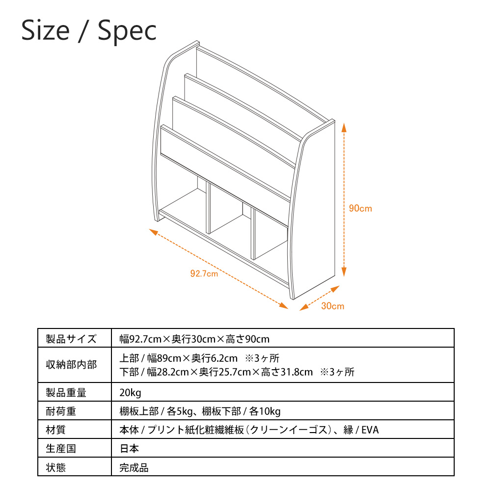 EVAキッズ マガジンラック (幅92.7×奥行30×高さ90cm) JAJAN ブラウン MRJ-93HD