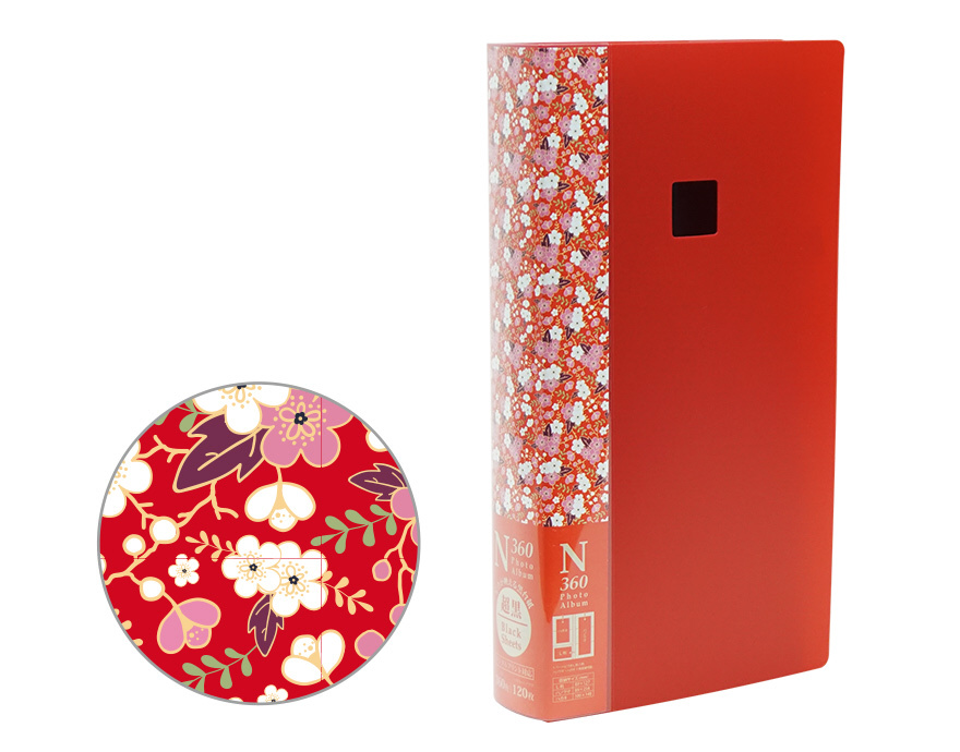 和柄模様の背表紙が印象的な、L判360枚収納の黒台紙フォトアルバム