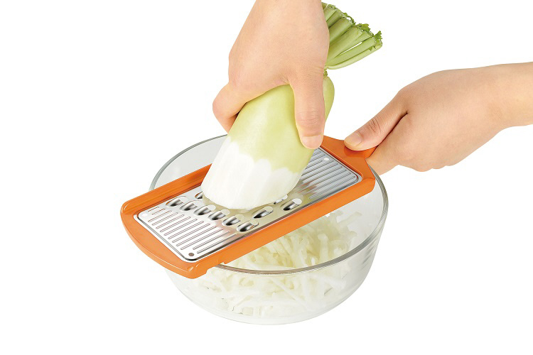 フルベジスマイルの太千切り器しりしり器で、にんじんしりしりやささがきを簡単に。