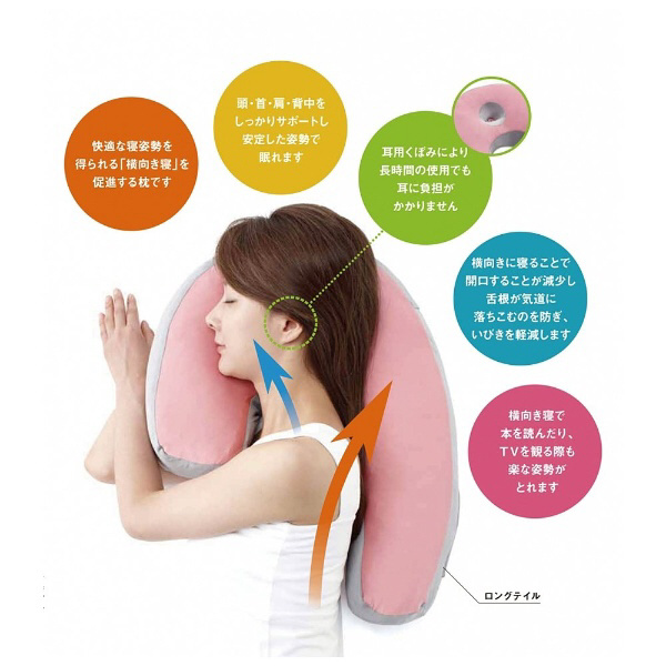 J字型のユニークなフォルムが横向き寝の体のラインにフィットし姿勢が安定するため、