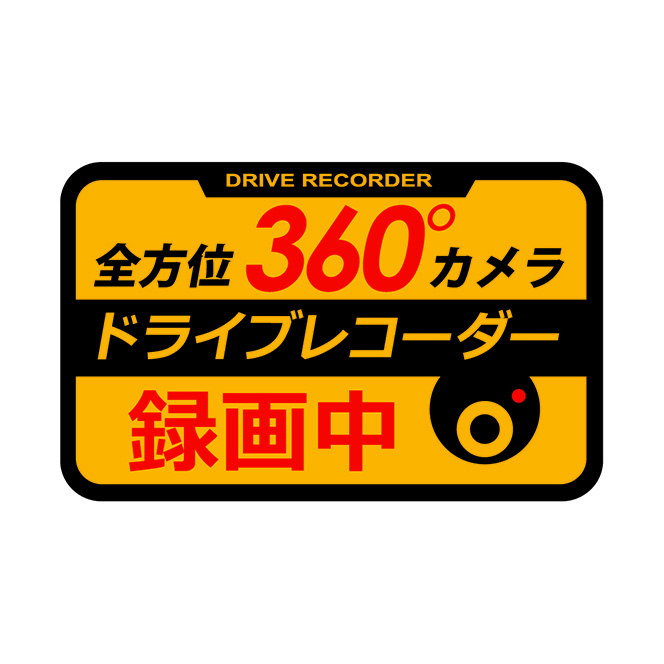 360°全方位ドライブレコーダーの装着をアピール!後続車のヘッドライトで光る反射タイプ。