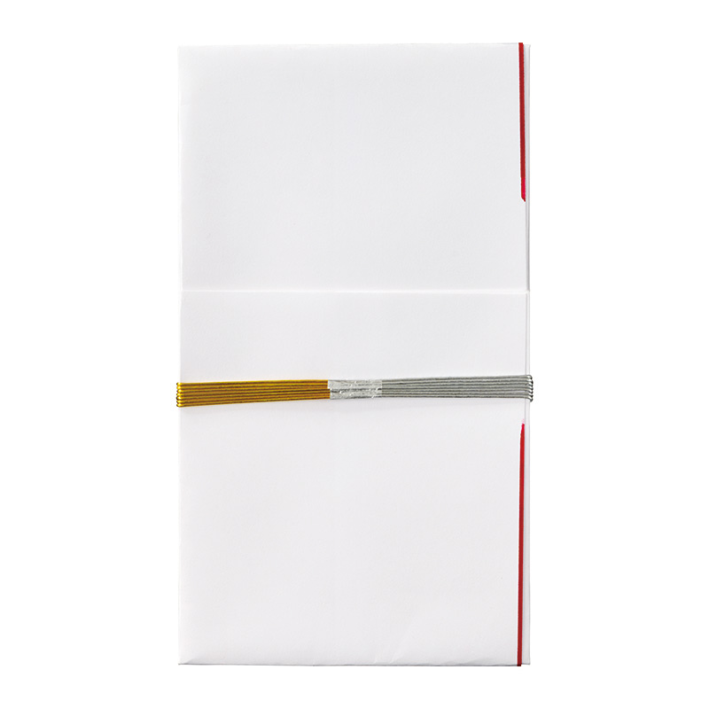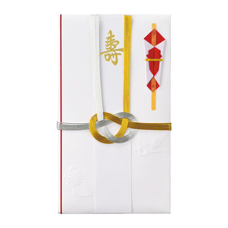 金封本体に鶴・亀模様を型押しした婚礼用金封。