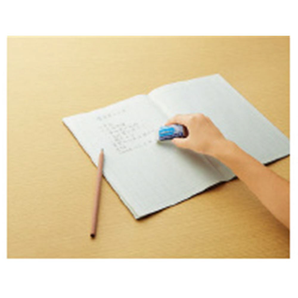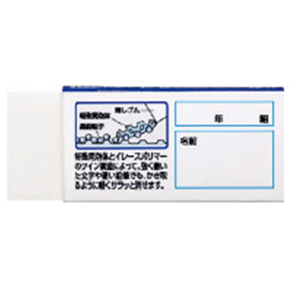 特殊発泡体とイレースポリマーのツイン構造によって、強く書いた文字や硬い鉛筆でも、かき取るように軽くサラッと消せます。裏面には、お名前記入欄もあります。※鉛筆・シャープペンシル用でご使用になれます。