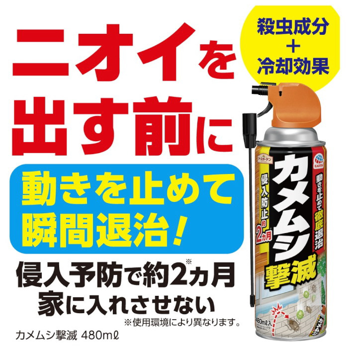 カメムシを殺虫成分と冷却効果でニオイを出す前に瞬間退治する殺虫スプレー