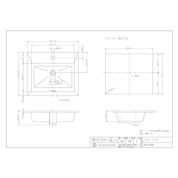 ●切込寸法W560×D473ミリ容量10L※単水栓の取付けには、アダプターが必要です。