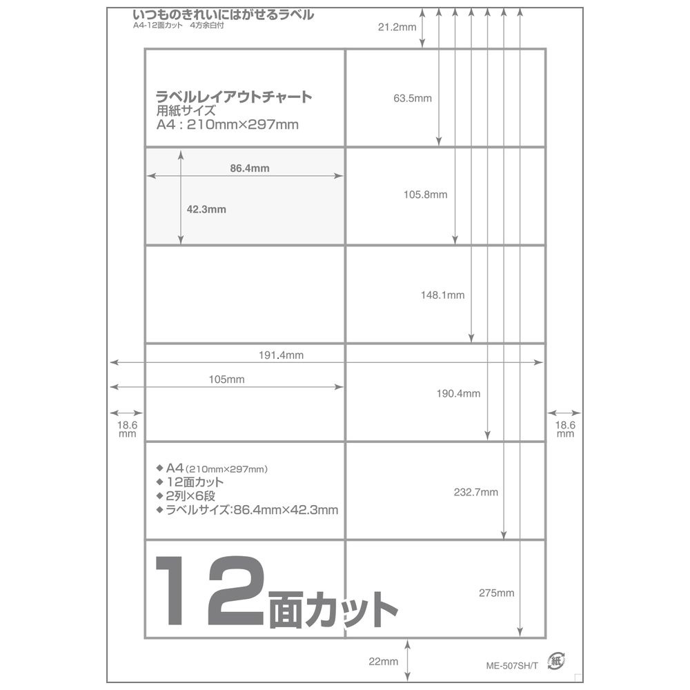 〔各種プリンタ〕いつものきれいにはがせるラベル 再ハクリ用 71μm ME-507SH [A4 /20シート /12面]