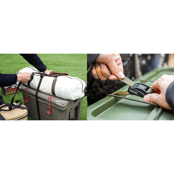●高強度ポリエステルベルト採用で大きな荷物もしっかり固定