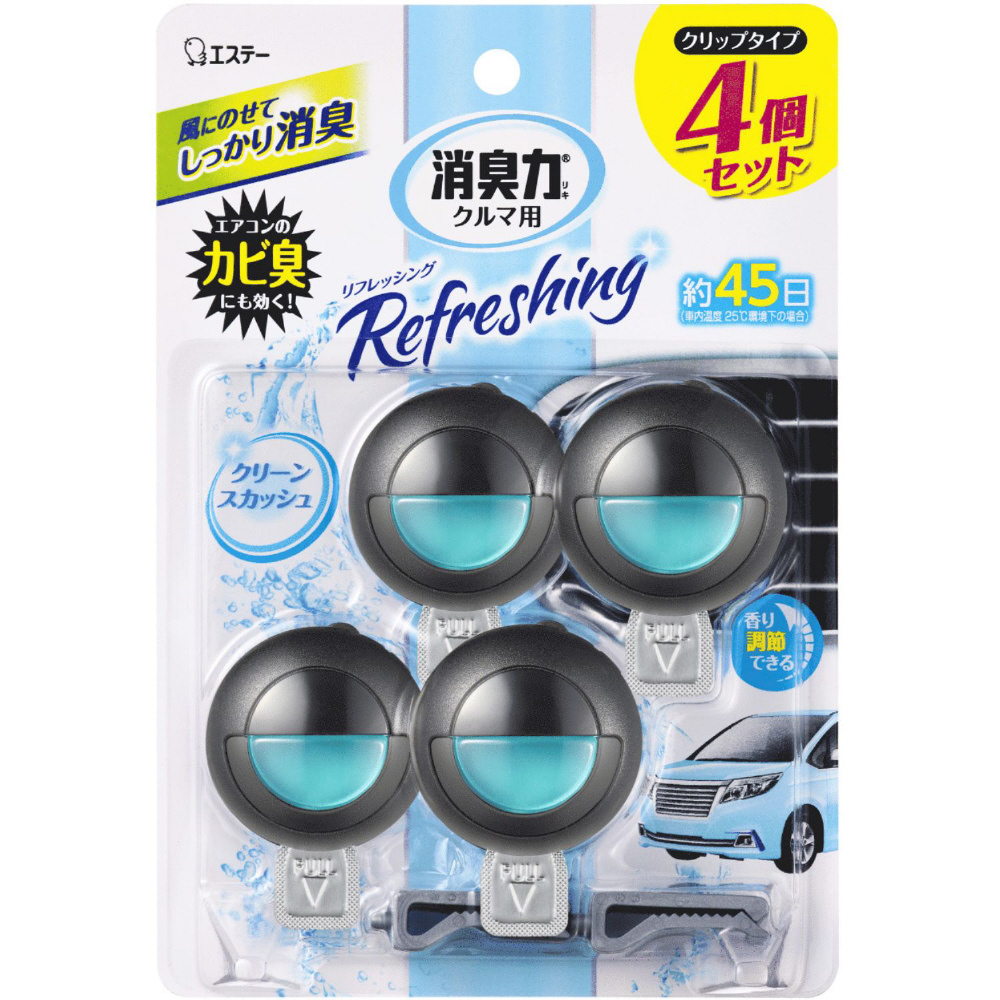 クルマの消臭力 クリップタイプ クリーンスカッシュ 3.2ml×4個セット [車用 消臭剤 芳香剤] クリーンスカッシュ