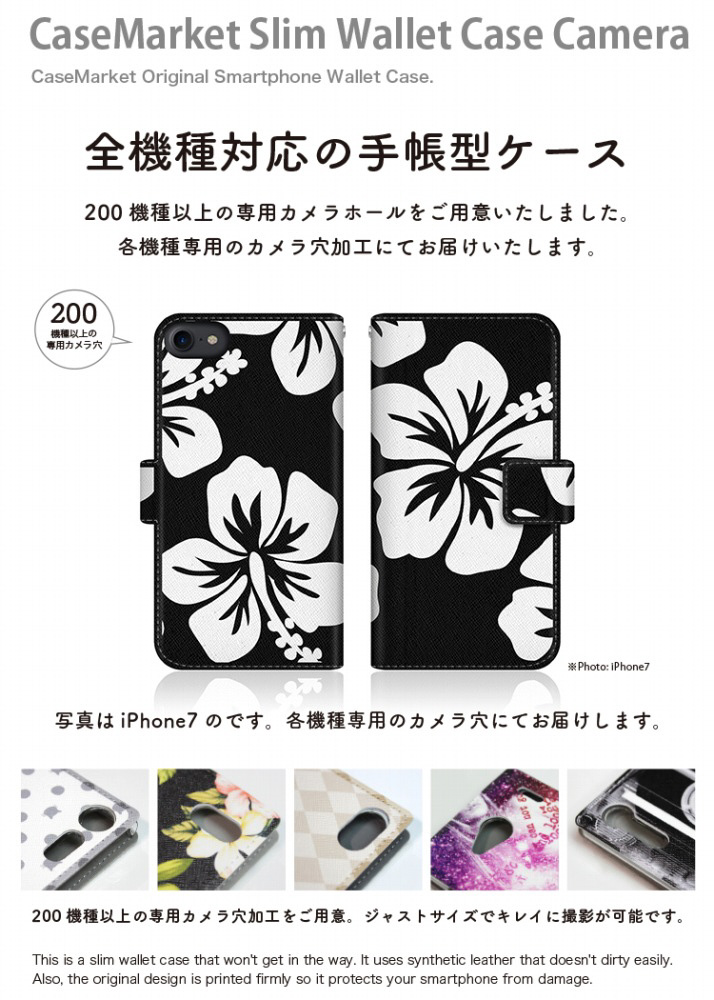 CaseMarket L-01J スリム手帳型ケース モノ タヒチ ハイビスカス モノトーン グラフィックス L-01J-BCM2S2077-78