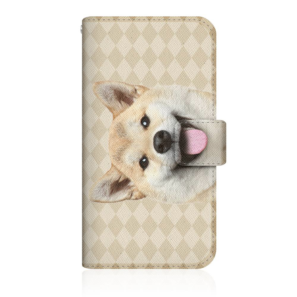 CaseMarket F-01K スリム手帳型ケース ZAKKA ZOO ノート キュート つぶらな瞳 柴犬 ワンワン フレンチ ダイヤ柄 ベージュ F-01K-BCM2S2821-78