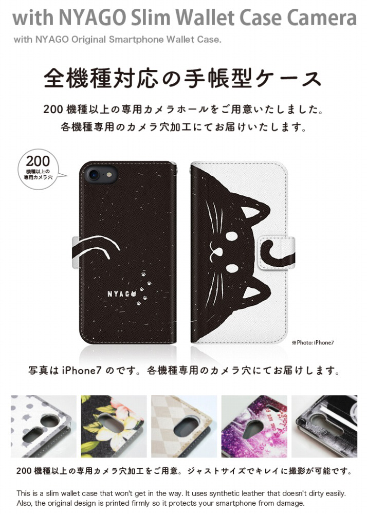 with NYAGOはお洒落でかわいい人気の猫デザインブランド。かさばらないスリム手帳型ケース。