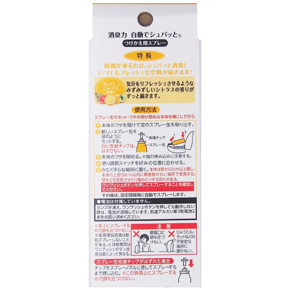 消臭力 自動でシュパッと 消臭芳香剤 電池式 玄関・部屋用 フレッシュシトラスの香り つけかえ 39mL 2個セット