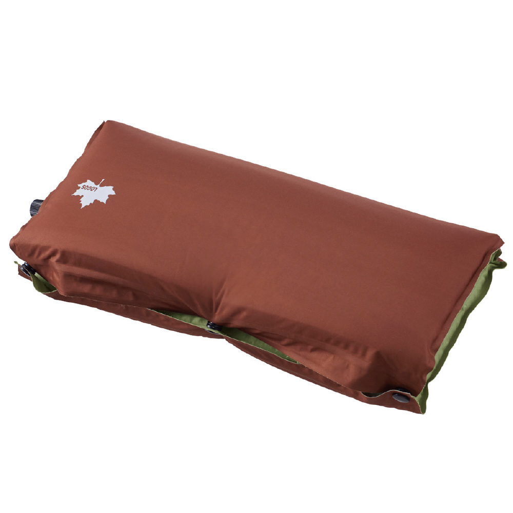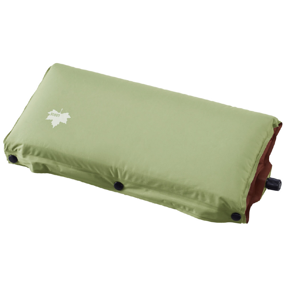 座布団だけでなく折りたたみボタンを止めると枕として使える。バルブを開くと自動空気注入。