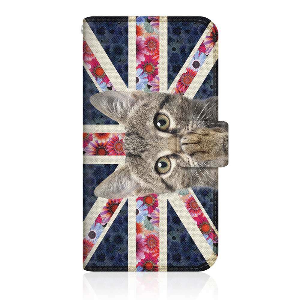 NYAGO HTV33 スリム手帳型ケース NYAGO ノート キュート 肉球をペロペロするにゃ〜。 - にゃんとも ユニオンジャック だにゃ〜。 - 花柄 HTV33-BNG2S2439-78