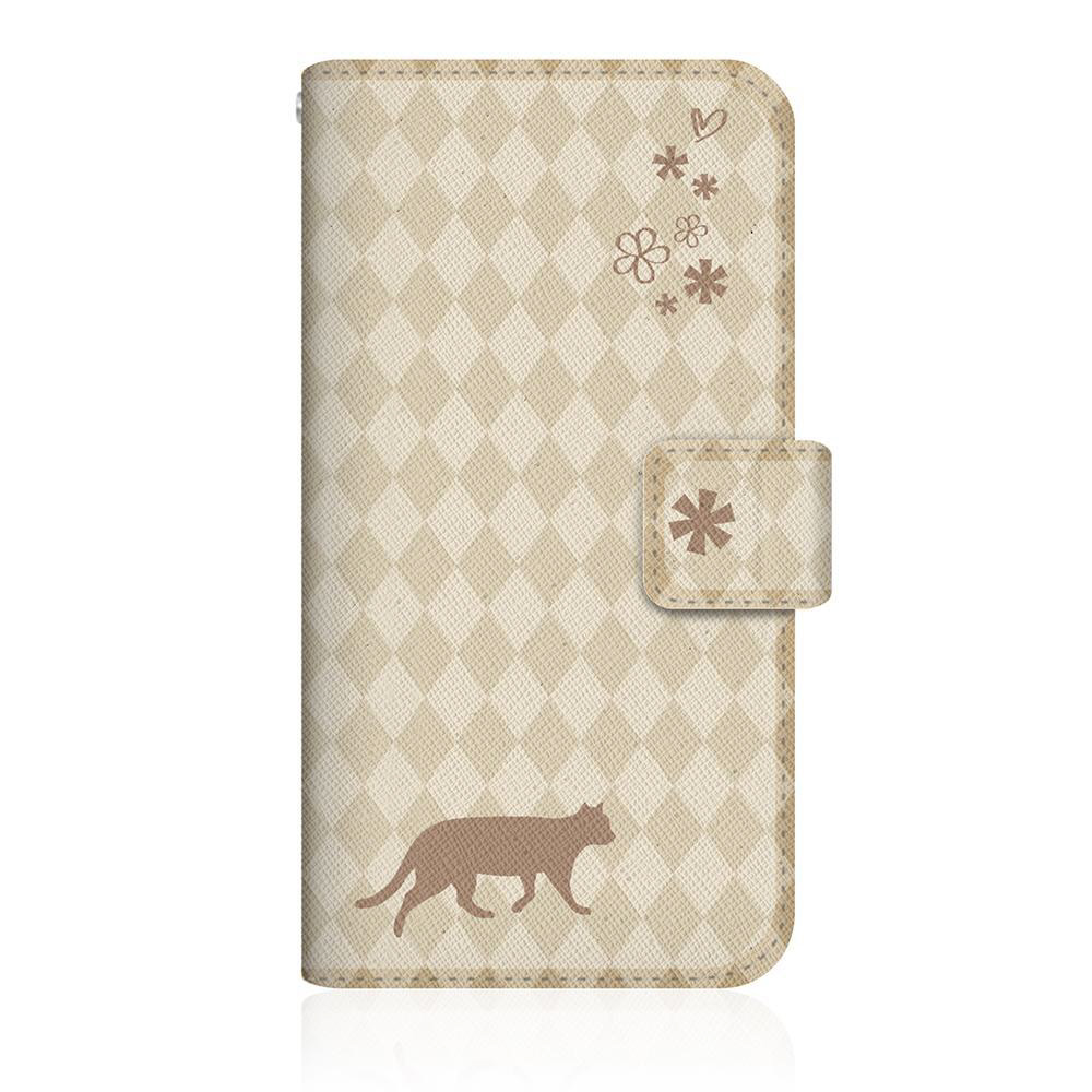 NYAGO HTV33 スリム手帳型ケース NYAGO ノート フレンチ フラワー ダイアリー キャット シルエット ダイヤ柄 & てくてくお散歩だにゃん クリーム HTV33-BNG2S2462-78