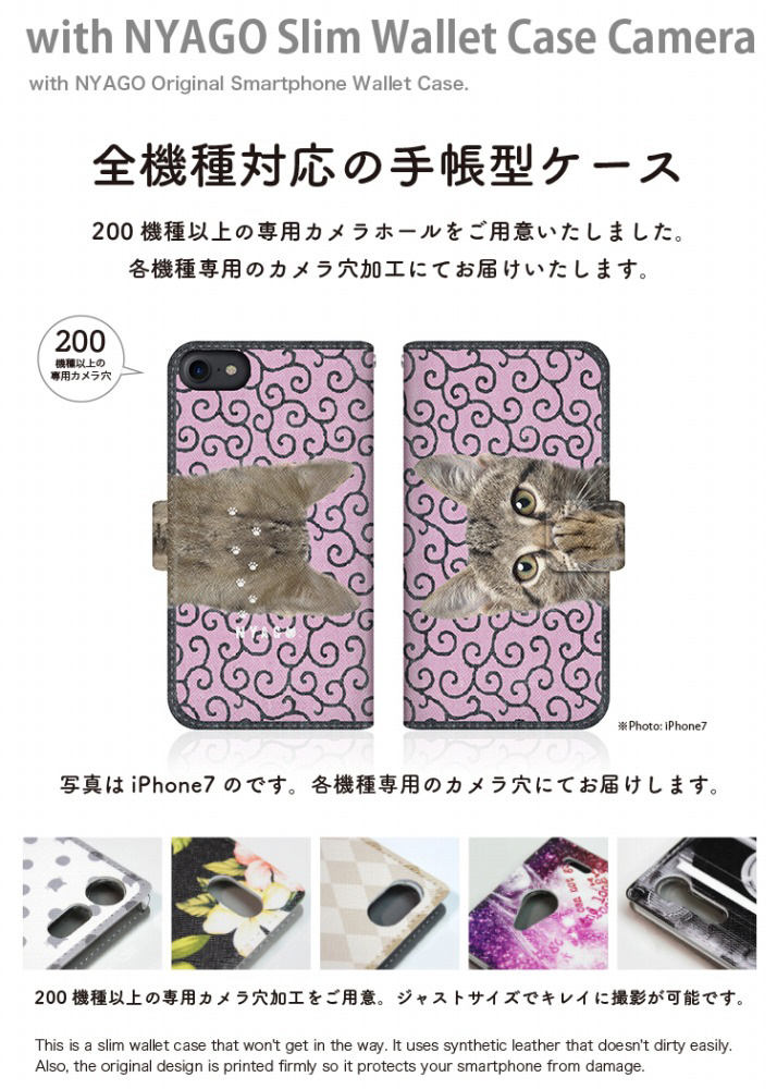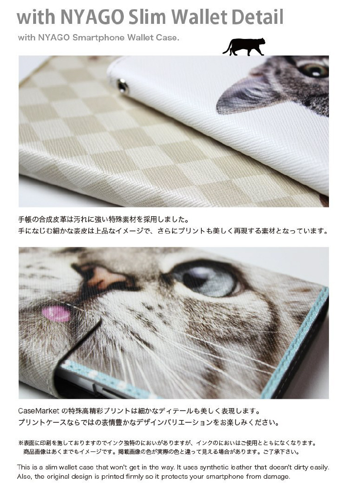 with NYAGOはお洒落でかわいい人気の猫デザインブランド。かさばらないスリム手帳型ケース。