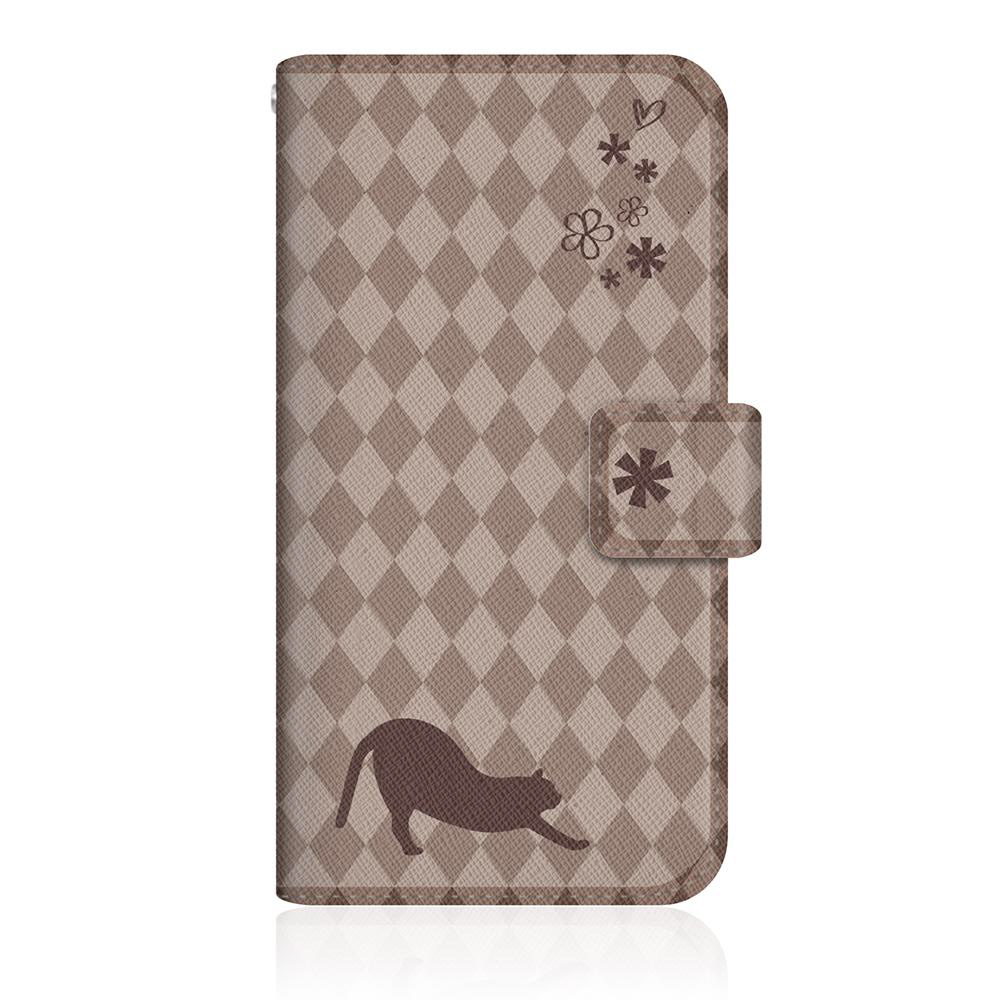 NYAGO FIG-LA1 スリム手帳型ケース NYAGO ノート フレンチ フラワー ダイアリー キャット シルエット ダイヤ柄 & のびのび?! チョコレート FIG-LA1-BNG2S2457-78