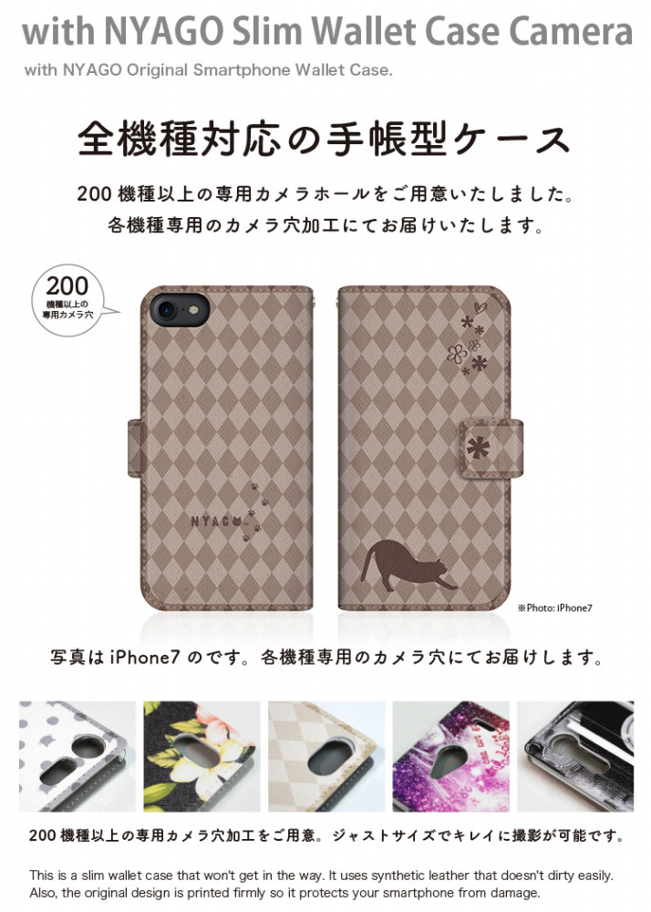 with NYAGOはお洒落でかわいい人気の猫デザインブランド。かさばらないスリム手帳型ケース。