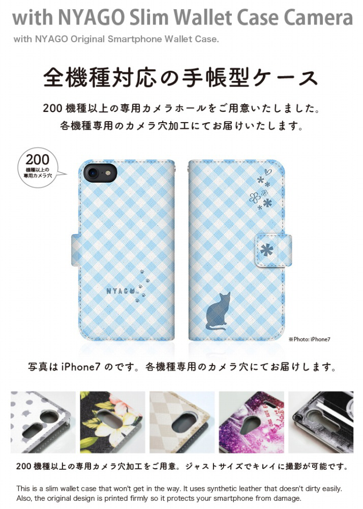 with NYAGOはお洒落でかわいい人気の猫デザインブランド。かさばらないスリム手帳型ケース。