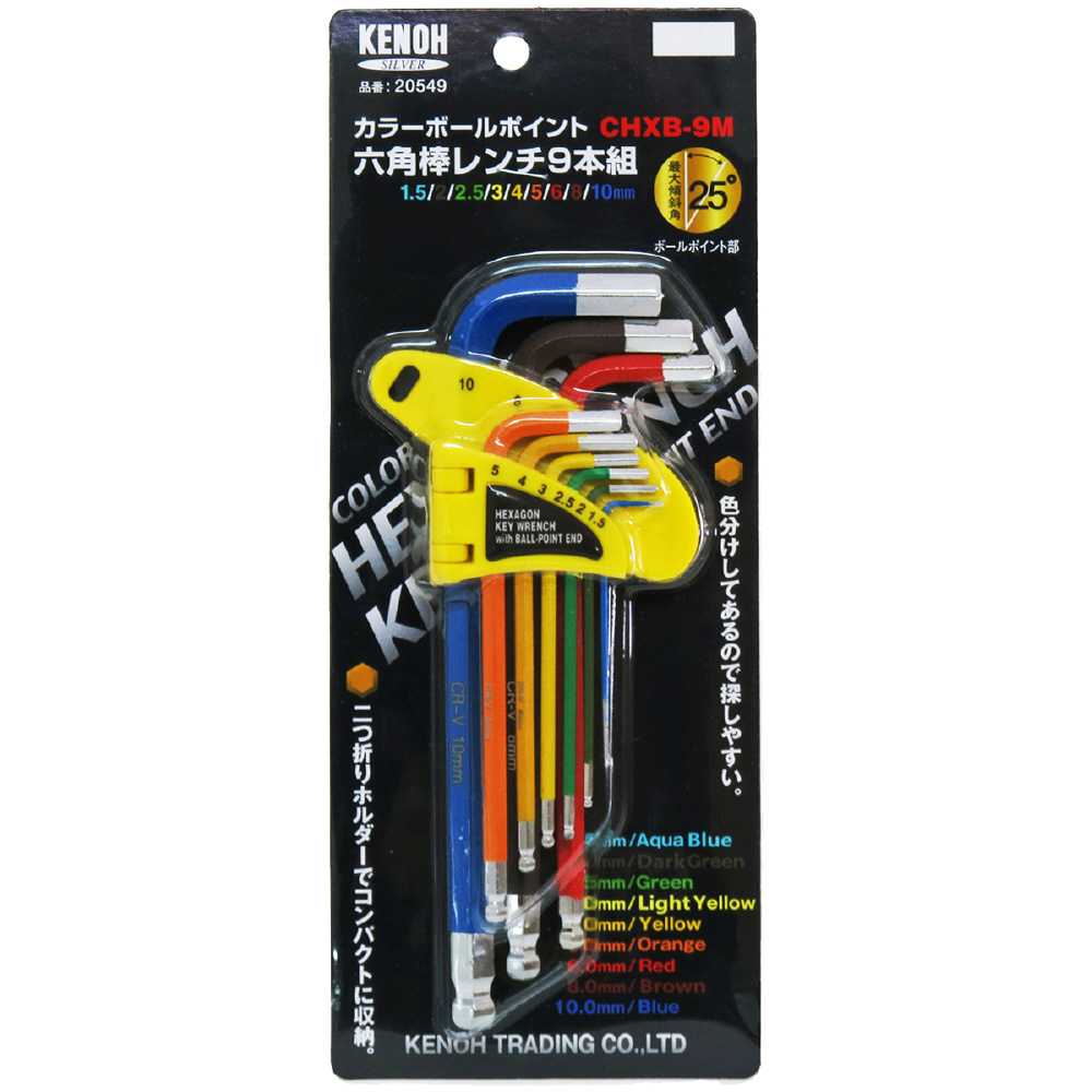 KENOH カラー ボールポイント六角棒レンチセット KENOH CHXB-9M