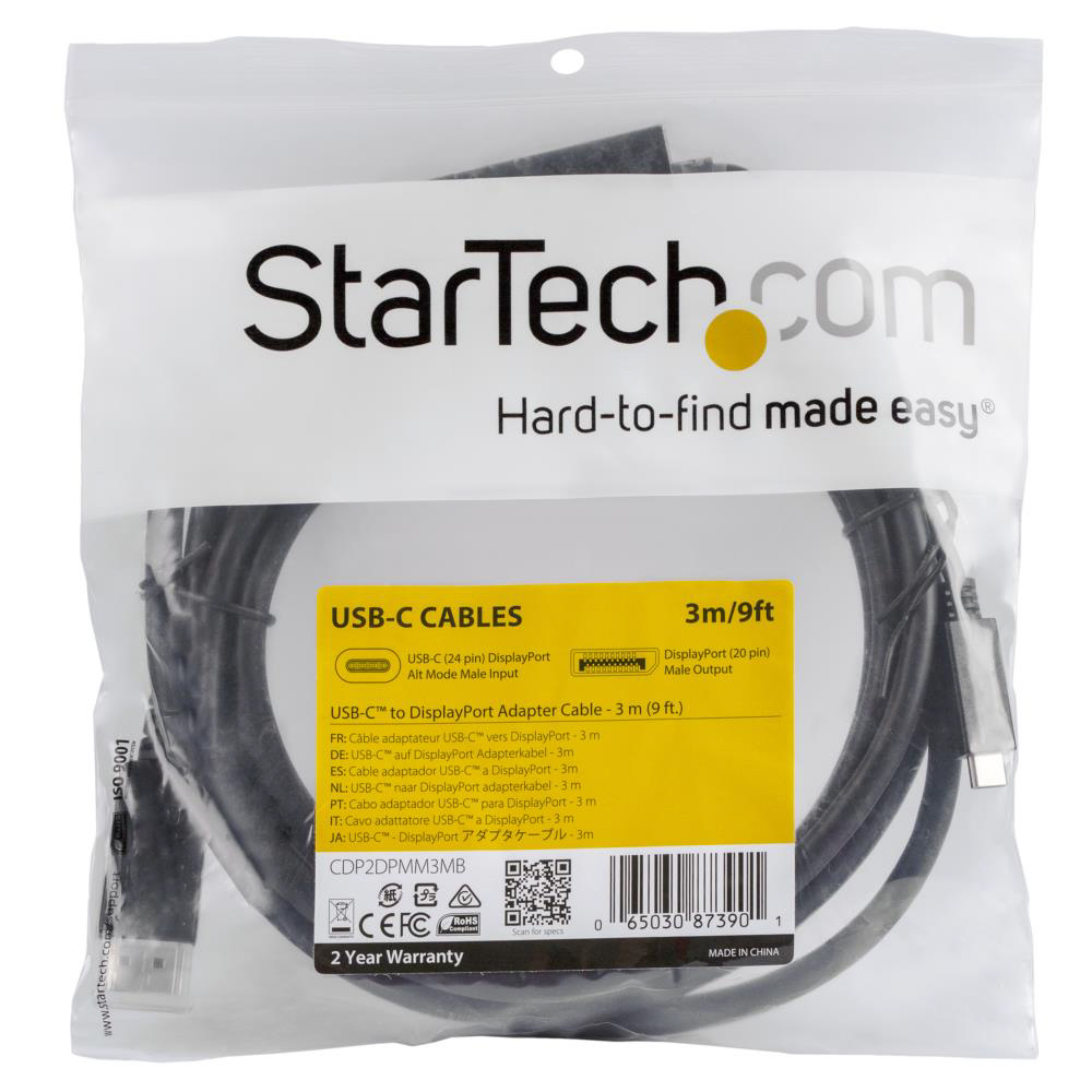 接続距離がより短い場合は、StarTech.com製1m USB-C - DisplayPort ディスプレイケーブル (CDP2DPMM1MB) および 1.8m USB-C - DisplayPort ディスプレイケーブル(CDP2DPMM6B)がご利用になれます。設置ニーズに合わせてケーブルの長さが選択可能です。