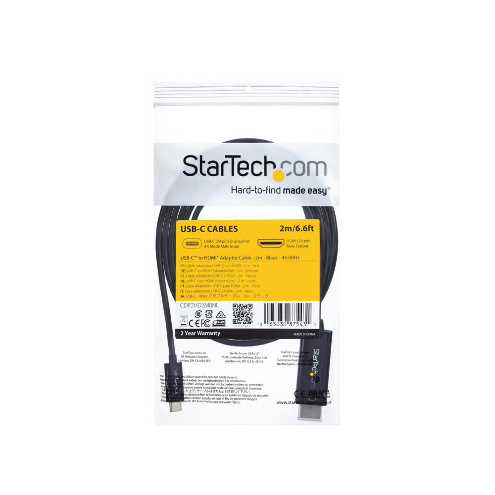 他の接続距離をお探しの場合は、StarTech.com製 1m USB-C - HDMI ケーブル (CDP2HD1MBNL) および 3m USB-C - HDMI ケーブル (CDP2HD3MBNL)がご利用になれます。設置ニーズに合わせてケーブルの長さが選択可能です。