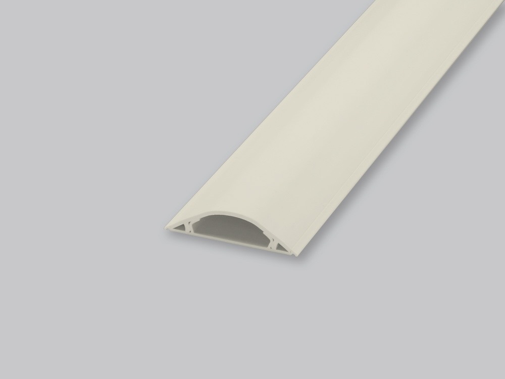 ●荷重や衝撃に強い特殊樹脂製の床用配線カバーです。 <BR>●カバーの傾斜がなだらかなフラットタイプですから、台車の通過がスムースでつまづきを防止します。 <BR>●配線時にケーブルが飛び出しにくい形状です。
