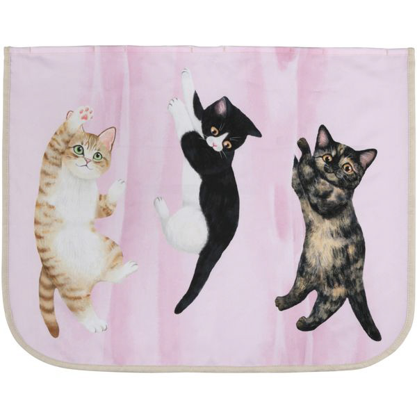 猫好き集まれ!いたずら猫がカーテンにぶら下がっているイラストがかわいい取り付け簡単な日よけカーテン