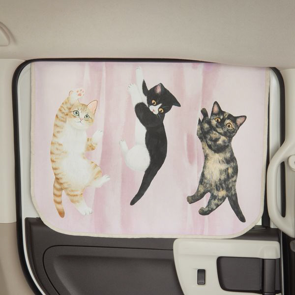 7253-78PI 車用カーテン フェリシモ猫部 FNいたずら猫 軽/普通車用 取付簡単 UVカット マグネット式 サイズ:65×50×0.2cm カラー:ピンク ピンク 7253-78PI