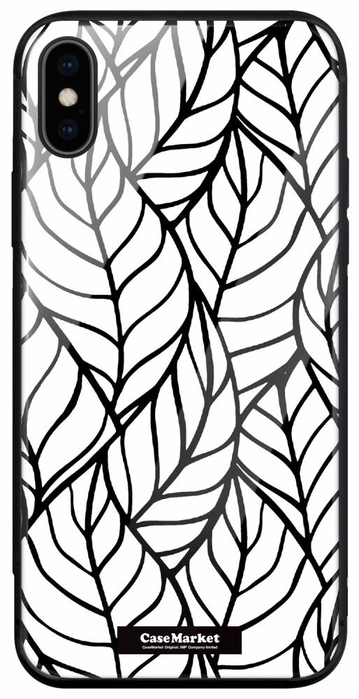CaseMarket 背面強化ガラス 背面ケース apple iPhone XS (iPhoneXS) モノトーン ボタニカル ボタニカル柄 リーフ グラフィックス 2081 iPhoneXS-BCM2G2081-78