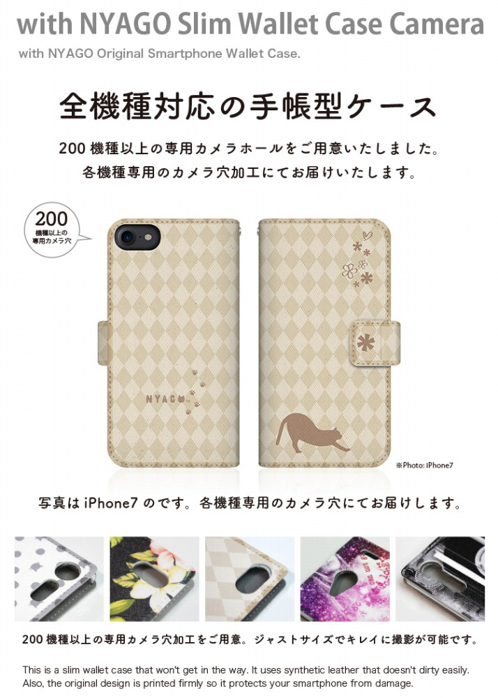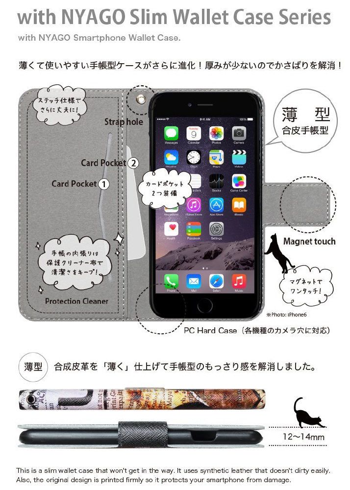 with NYAGOはお洒落でかわいい人気の猫デザインブランド。かさばらないスリム手帳型ケース。