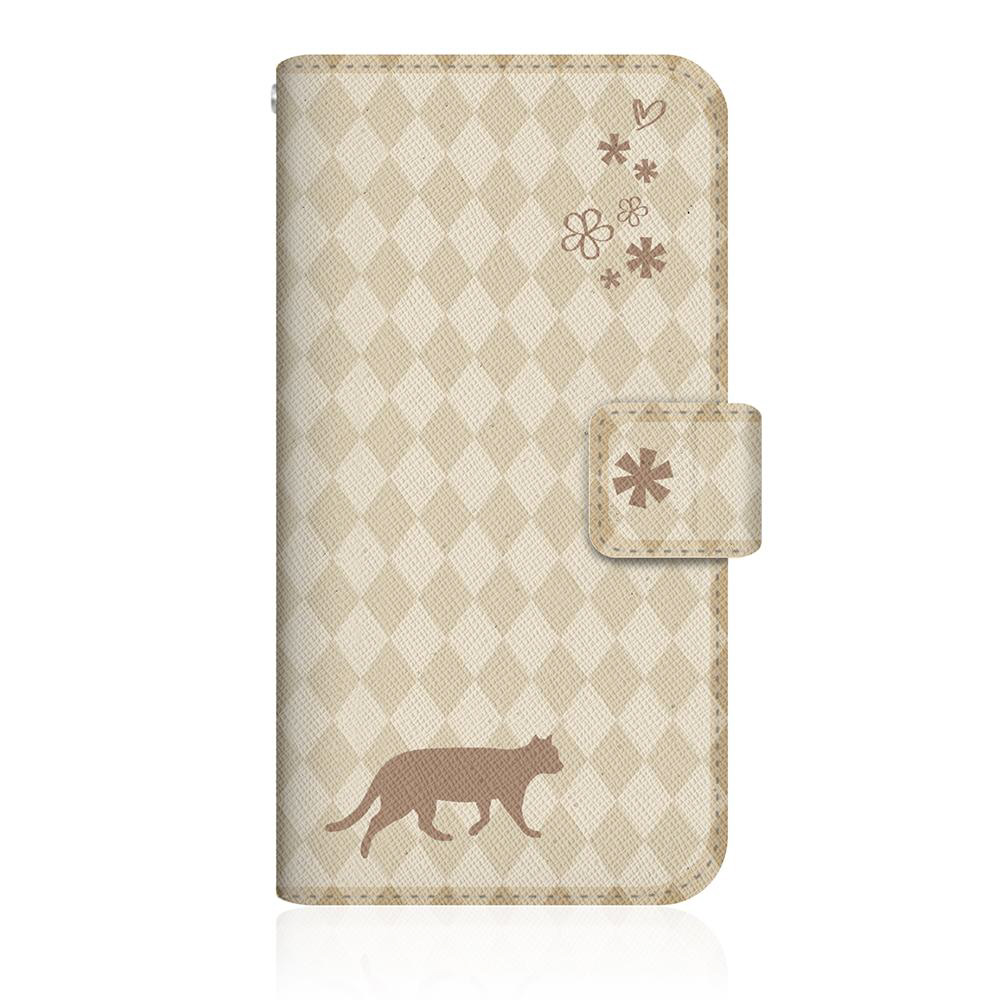 NYAGO SCV41 スリム手帳型ケース NYAGO ノート フレンチ フラワー ダイアリー キャット シルエット ダイヤ柄 & てくてくお散歩だにゃん クリーム SCV41-BNG2S2462-78