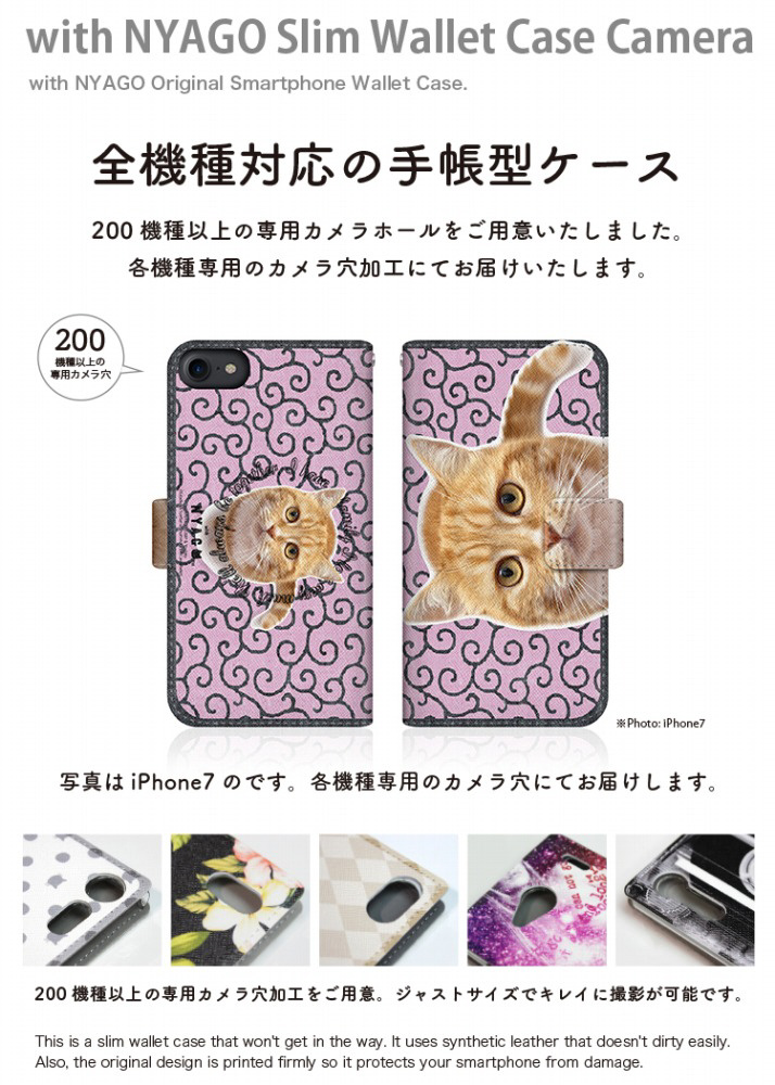 with NYAGOはお洒落でかわいい人気の猫デザインブランド。かさばらないスリム手帳型ケース。