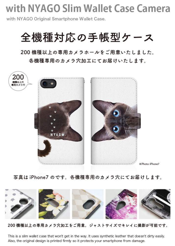 with NYAGOはお洒落でかわいい人気の猫デザインブランド。かさばらないスリム手帳型ケース。