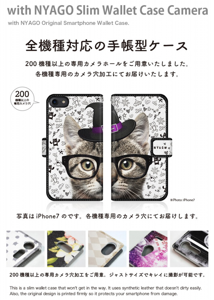 with NYAGOはお洒落でかわいい人気の猫デザインブランド。かさばらないスリム手帳型ケース。