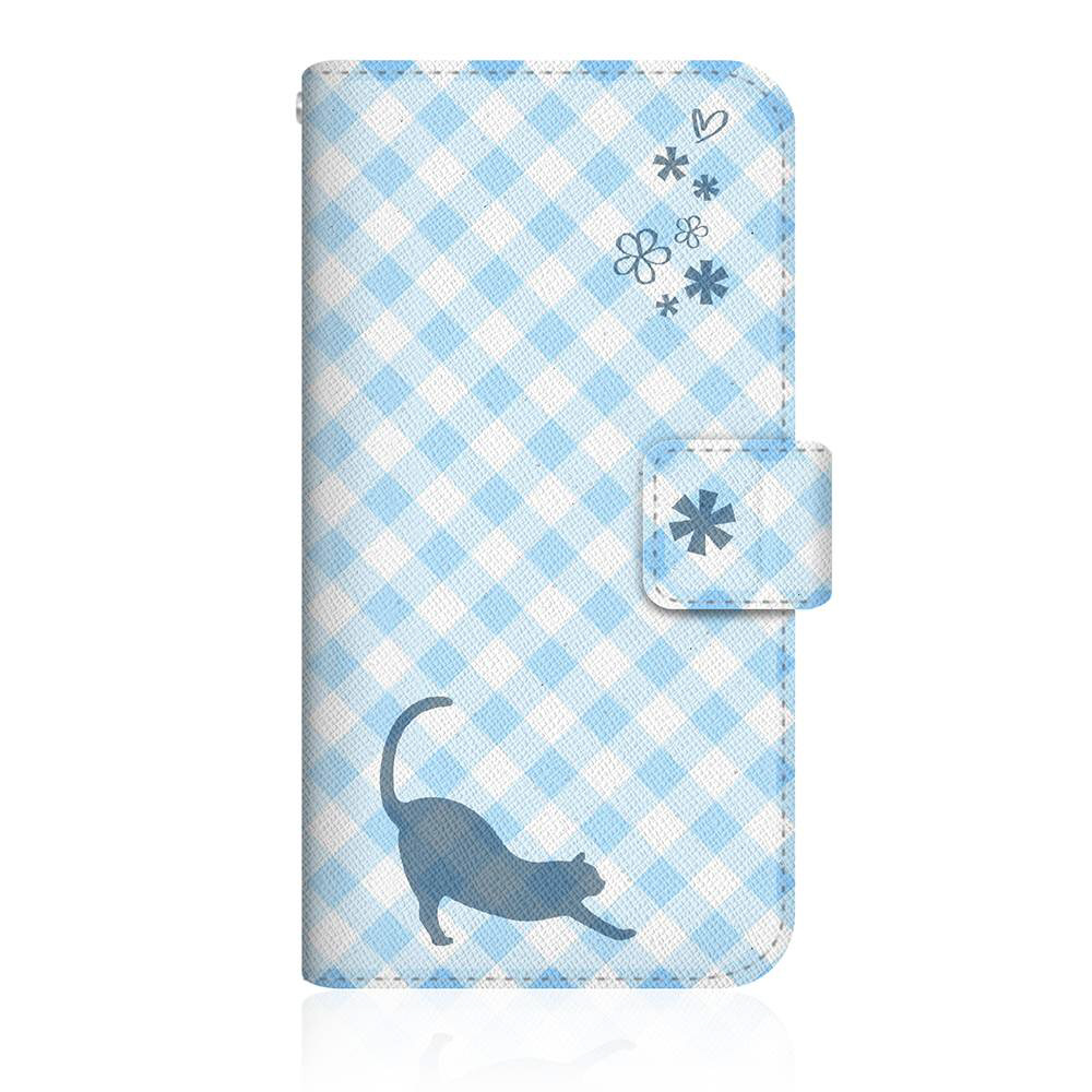 NYAGO G020H スリム手帳型ケース NYAGO ノート サマー フラワー ダイアリー キャット シルエット - ブルー チェッククロス柄 & のびのび〜! G020H-BNG2S2672-78