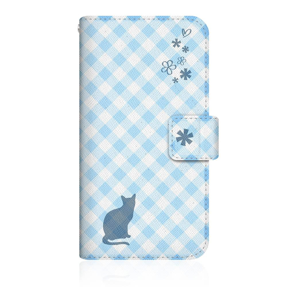NYAGO G020H スリム手帳型ケース NYAGO ノート サマー フラワー ダイアリー キャット シルエット - ブルー チェッククロス柄 & おすましだにゃ G020H-BNG2S2673-78
