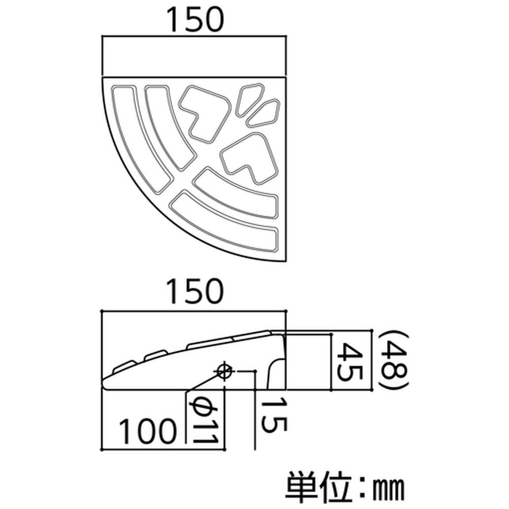緑十字 45mm段差用プレート コーナータイプ 黒 H45×W150×D150mm 再生ゴム製 121024