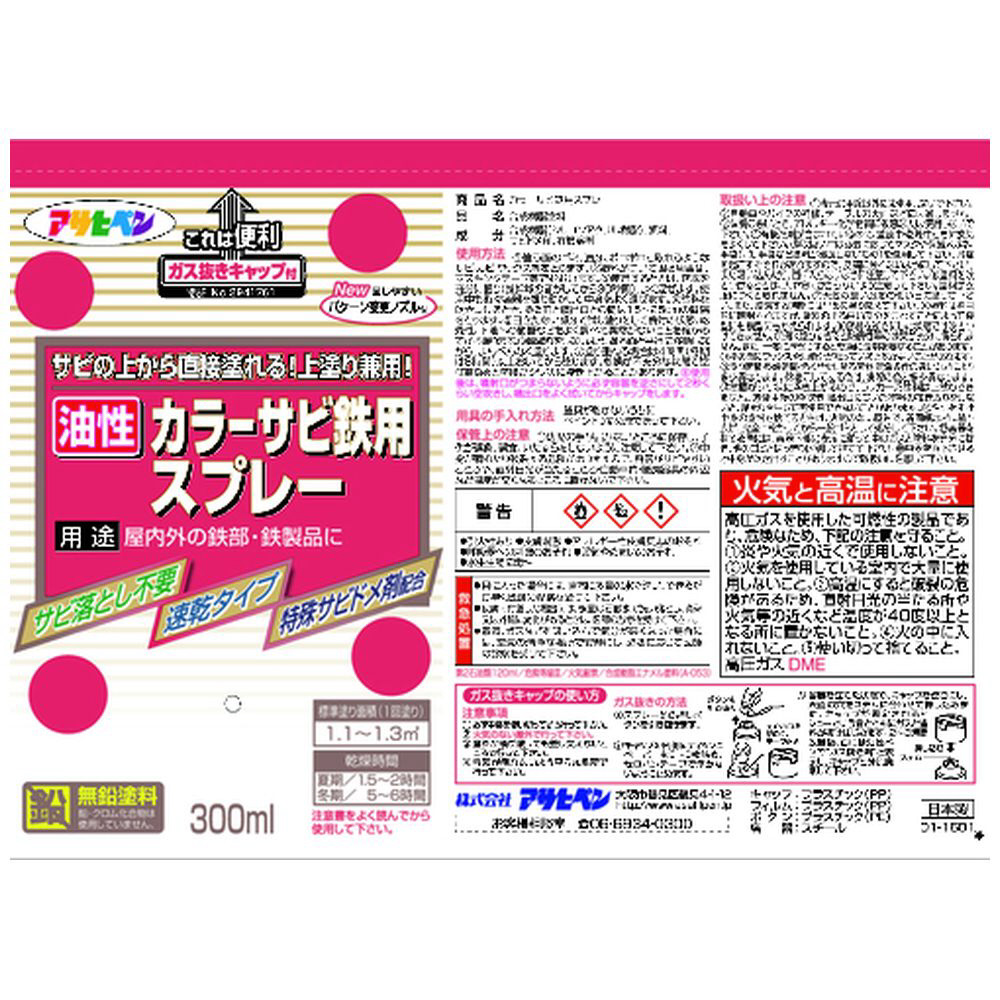 アサヒペン カラーサビ鉄用スプレー 300ML 白