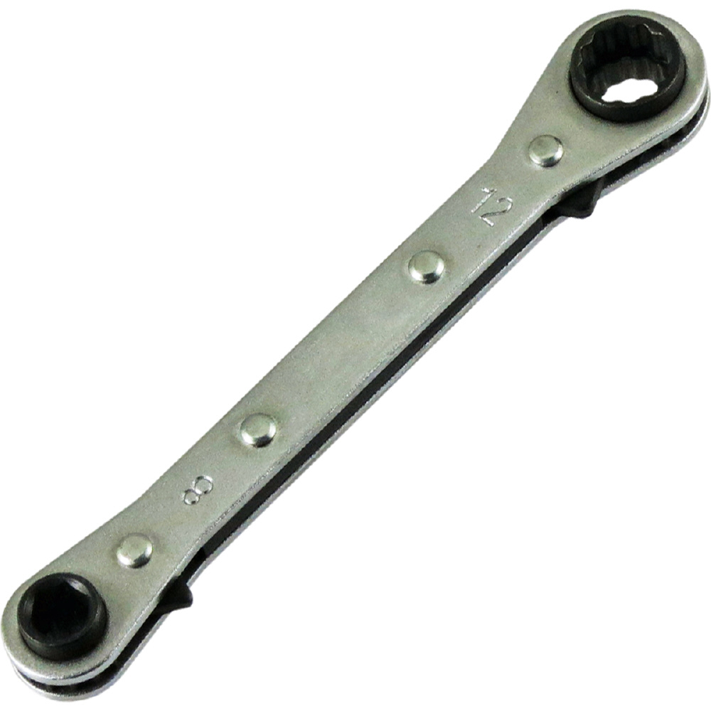 4サイズ板ラチェットレンチ!1本のレンチで4サイズのボルトxナットを回せる4in1タイプ!